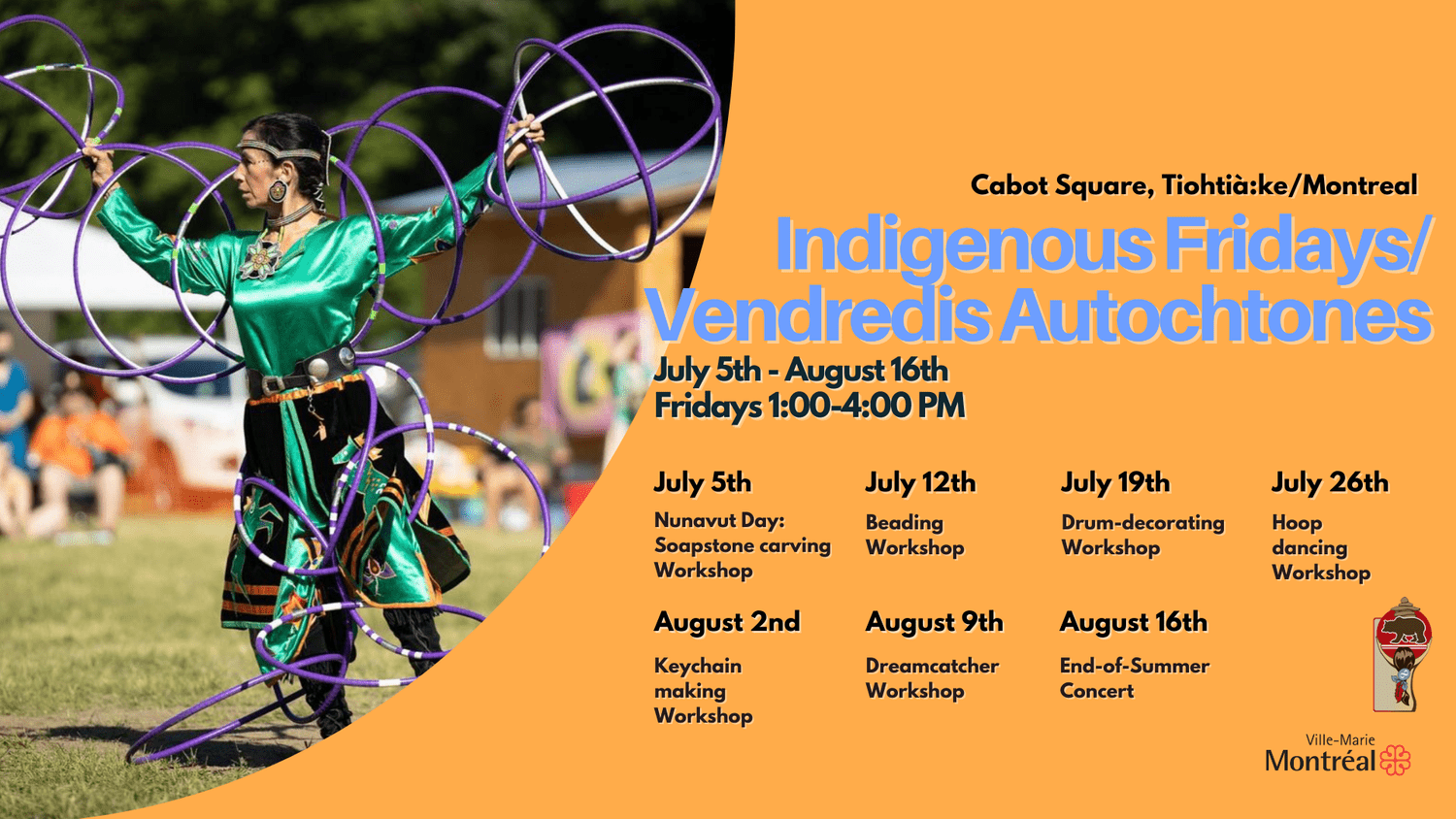 Join us for Indigenous Fridays, a special free summer event series presented by the Native Women's Shelter of Montreal and the City of Montreal!